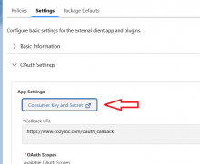 Step 4. After saving, go back to the Settings subnavigation menu and set a Callback URL (it is not used) and the following scopes: