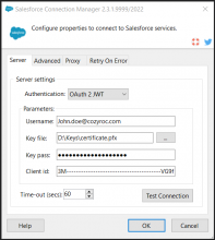 - Once the connection manager dialog opens, enter your User name, which is an email address associated with your Salesforce account.