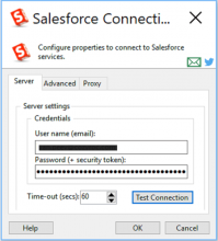 Use the Server page of the Salesforce Connection Manager dialog to specify properties for connecting to Salesforce service.